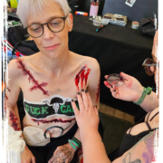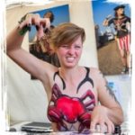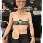Bereits im Jahr 2022 hatte sich Kati (Kathrin Erjavec), bestärkt durch die stabilisierende Kraft des damals noch kleinen Teams in der W:O*Art-Ausstellung von Jens Rusch, entschlossen, all ihren Mut zusammen zu nehmen. Sie ließ ihre durch eine Brustamputation lädierte Brust im Nachbar-Pavillon „Körperkunst“ bemalen und begab sich anschließend mutig auf das Infield. Die gewaltige Bestätigung war ihr ein unerwarteter Lohn für ihren gewaltigen Mut.