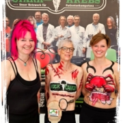 Beim WOA 2023 begaben sie sich dann gemeinsam in das Bodypainting-Studio im Foundation Camp des WOA. Nun war die Resonanz in unserem neuen Pavillon unter dem Titel „Netzwerk Patientenkompetenz“ noch größer und die Gespräche mit anderen Betroffenen wurden noch intensiver. Dazu trugen auch die Präsenz von Torsten Sträter, Aurel Manthei, Lars Jessen und anderer Prominenter bei.